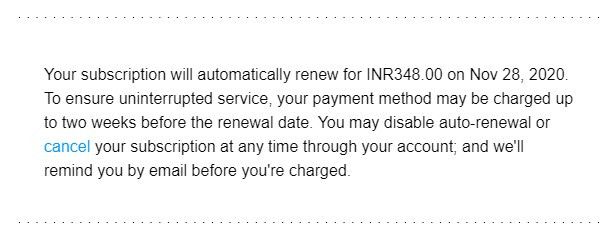 The e-mail that I had received on purchase of the Rs 29 per month plan mentioned this: